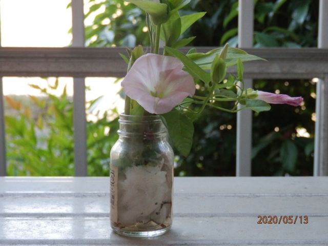 先日のヒルガオ、小瓶に入れて観察しています。 花は一日で終わるのですが、次から次にツボミが出ています。今日も咲きました。明日のツボミも出ています。こんな小さな植物ですが、すごい生命力ですね。