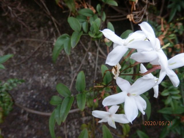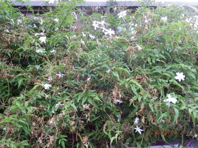 いつもの散歩コースで美容院の壁一面に白いカズラの花が咲いていました。今日の撮影時にはピークが過ぎて、少しだけ残っていました。