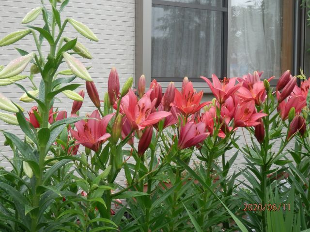 左の白いユリはテッポウユリかカサブランカか、花が開かないとわかりません。