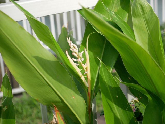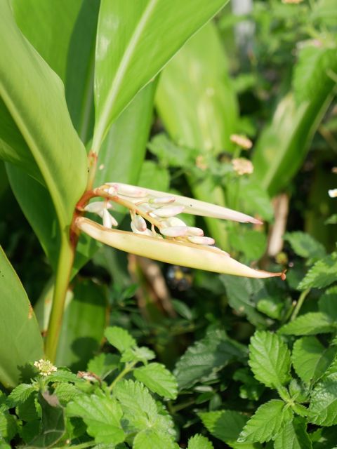 散歩道に咲いていた鳥のくちばしから花が咲いているように見える‥花はこれからのようです。昔からよく見る花なんですが何かわからない。
