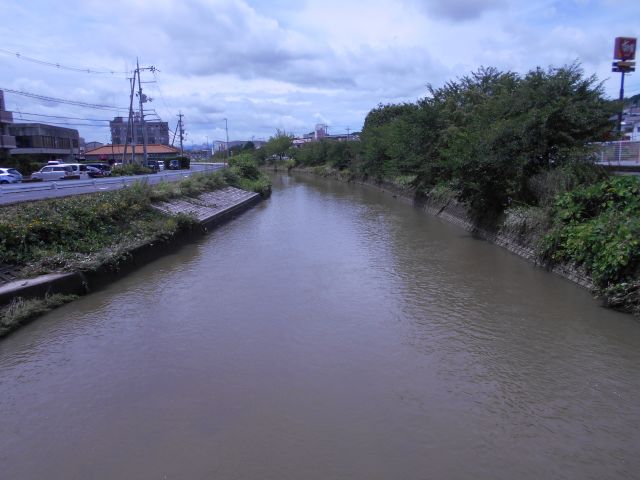やっと雨があがったので、竜田川の水位を見に行ってきました。