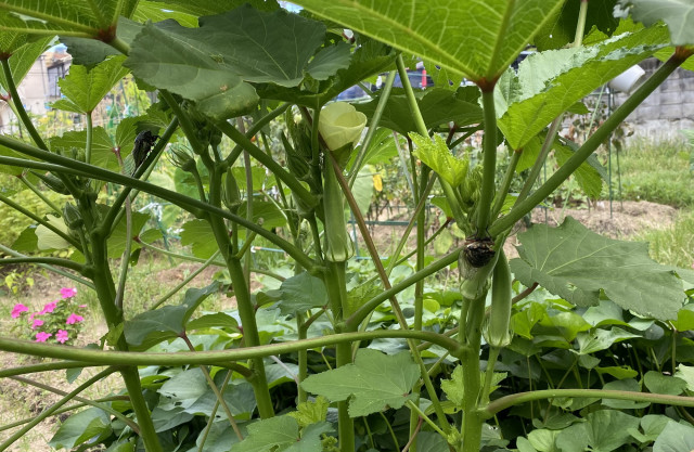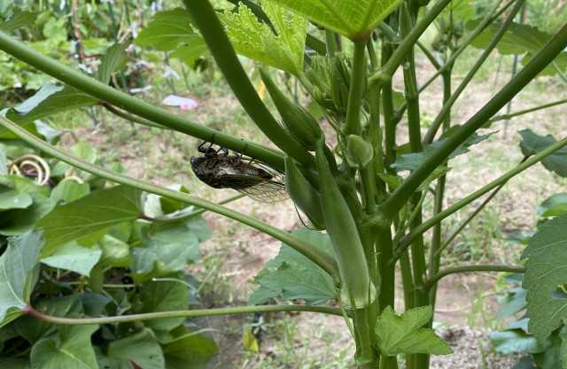 クマゼミが2匹オクラの見張りをしてくれます。安心です!
