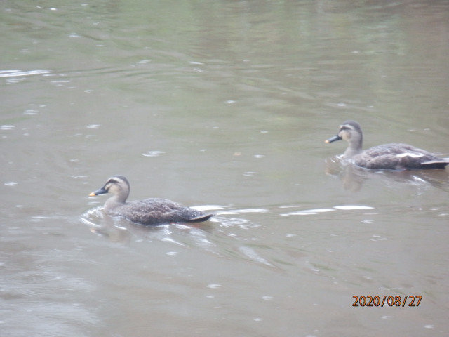 カモは、いつも10羽ぐらいの編隊を組んで泳いでいます。何を食べているかが気になります。シギは撮影できませんでした。