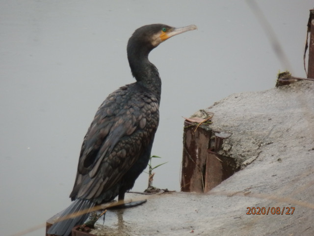 水が濁ると潜水しても魚が見えないのかな・・・暇そうに 恨めしそうに川面と逆の方を向いていました。ハシビコウみたい不動のポーズ。