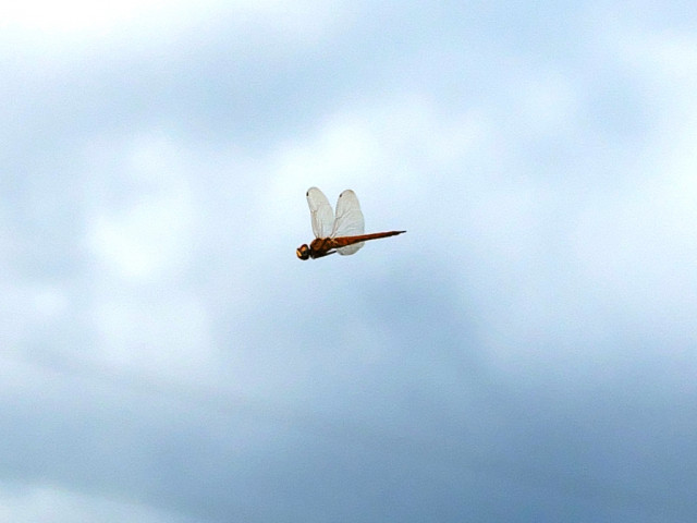 《 トンボのホバリング、飛行機と一緒、脚を引っ込めているね!