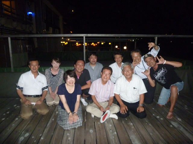 鴨川の床に集まりました。雨気味で料理は部屋の中でした。残念