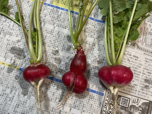 ラディッシュも一ヶ月経つと色々な形を楽しめますよ!