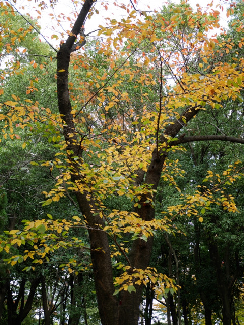 公園の紅葉も進んできています。薄い黄色と緑が綺麗ですね!