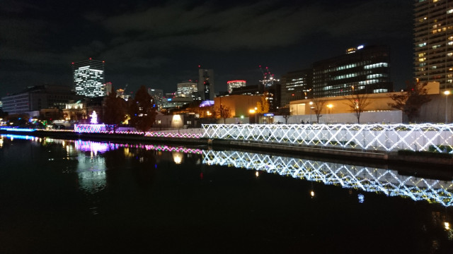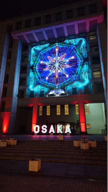 今年は中央公会堂のマッピングは中止になりました 大阪市役所のイルミネーションと難波橋からのイルミネーションが元気をくれました
