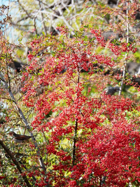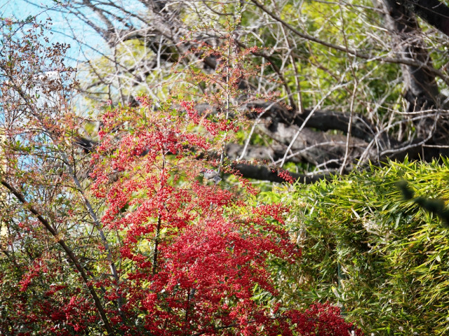 散歩道には今は花もなし、赤い実が沢山なっている木がありましたが南天ですか?