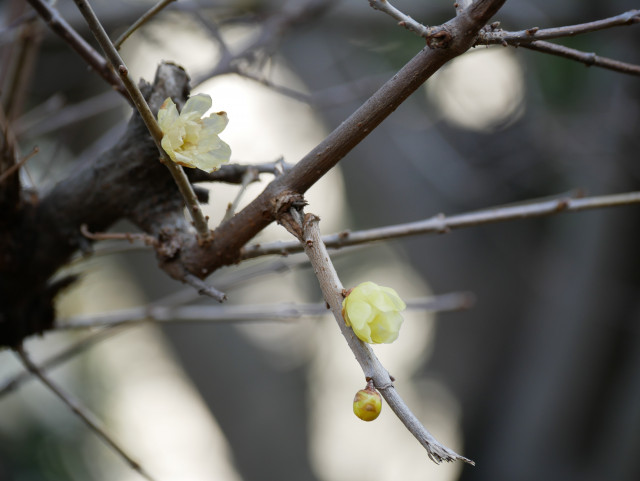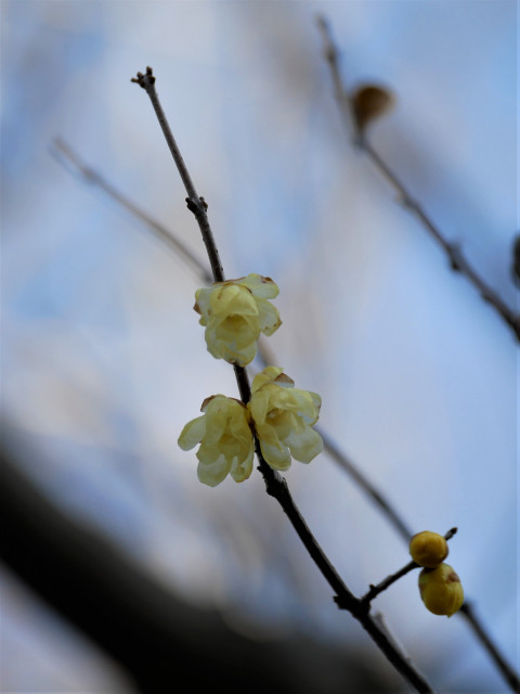 先日、うえ爺さんがブログに上げていた蝋梅の木があったのを思い出したので、どんな感じか見てきました。