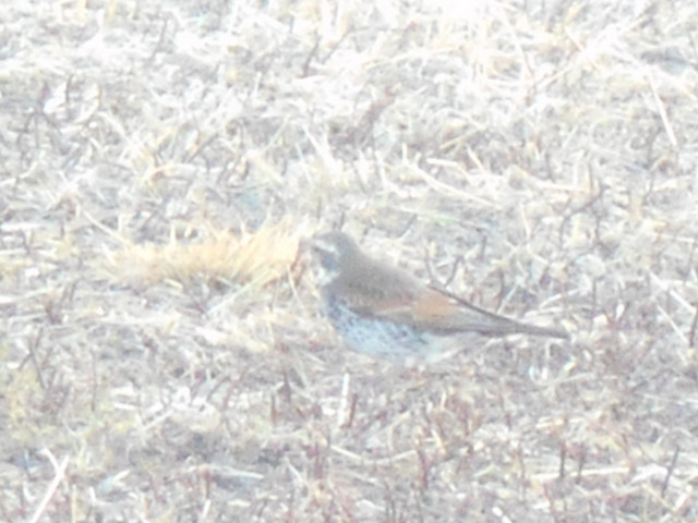 田んぼでツグミを発見。2~30分撮り続けましたが、10m以内に接近できません。他の鳥と違ってチョコマカと移動しないので撮影は簡単ですが・・・望遠がないとね・・・これが限界です。