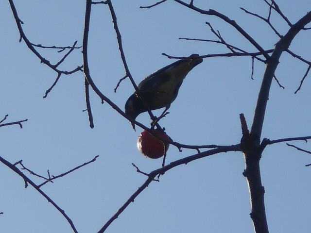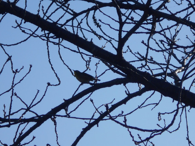 メジロを見つけました。カメラの枠に入れて、焦点合わしている間に逃げられます。とにかくシャターを押し続けます。運が良けりゃ写っていることもあります。