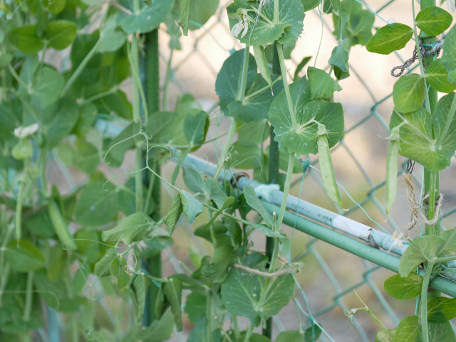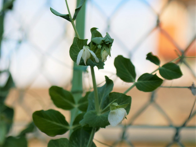 プランターに育てられたエンドウですか? 豆と花が咲いていました。