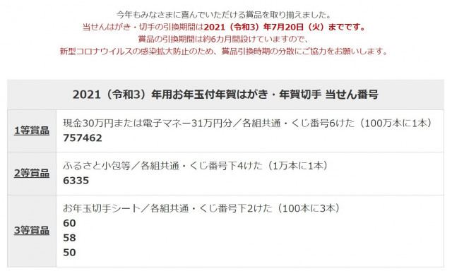みなさん「お年玉付き年賀ハガキ当選番号」もうチェックしましたか? すっかり忘れていました。