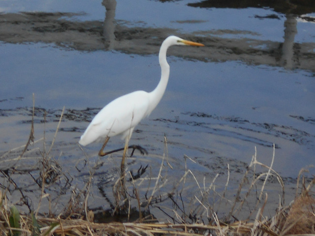 竜田川で時々アオサギを見かけますが、シロサギは初めてです。