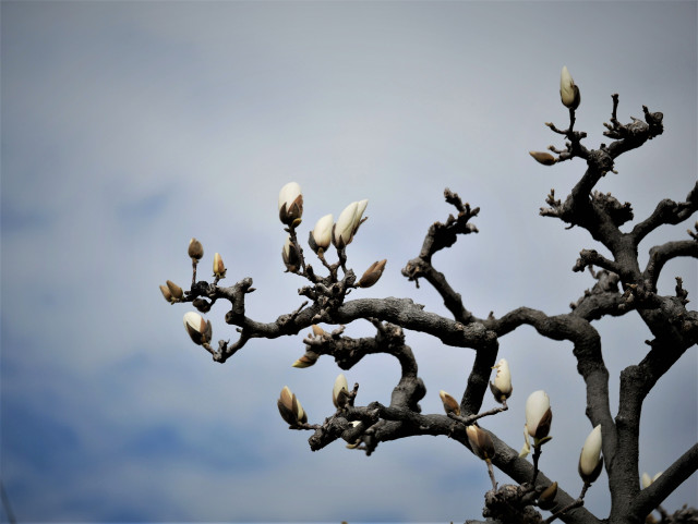 天気はまあまあ良いのですが風が冷たい、散歩道の白木蓮がぼちぼち咲いてきそうです。