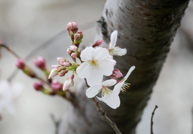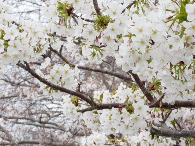 この白い花も桜ですかね!毎年開花が早いです。