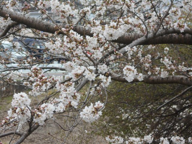 竜田川岸のサクラは昨日と変わりなしです。気の早いカップルが一組