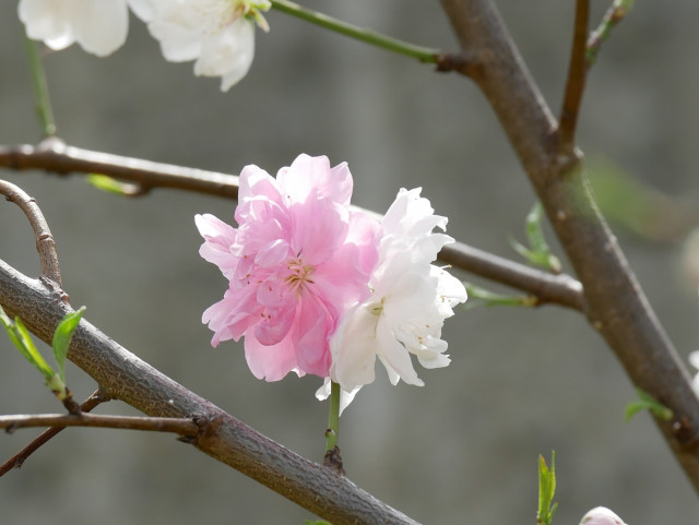 以前も投稿した一つの木で白と紅の花が咲いていました。