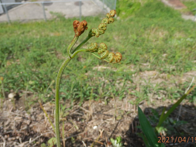貯水池に登る陽当たりののよい斜面にワラビが生えています。誰も採らないので、けっこうありました。