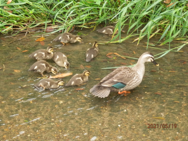 小雨の中を「カルガモ親子観察」決行しました。(傘をさすほどでもなかった:霧雨)