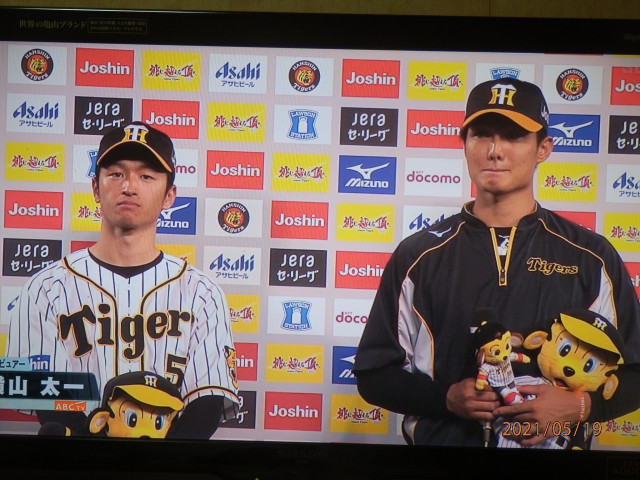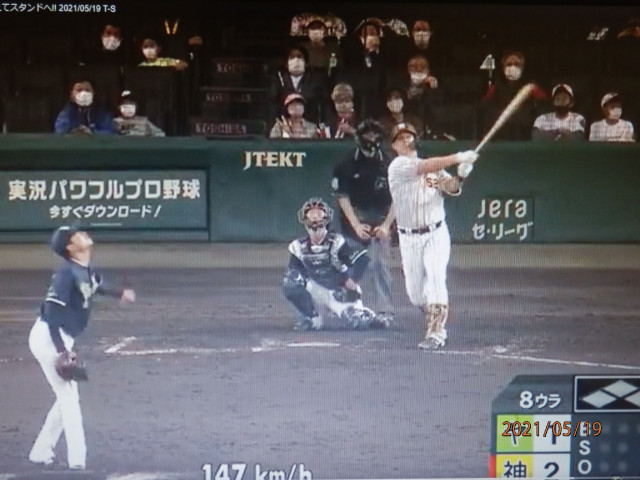 同点の5回裏、西純也に代打が送られたが・・・次打者の近本がホームラン。勝利投手の権利が残った。持ってるね・・・