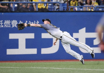 6回 2死1・2塁 川端の打球を横っ飛び スーパーキャッチ