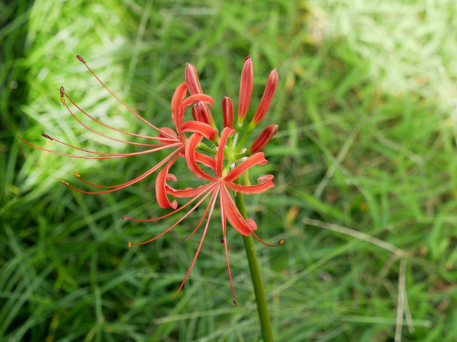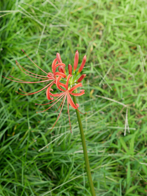 昨年どこからか飛んできた種が育ったのか彼岸花が一輪咲きましたが、今年も同じ場所に咲きました。