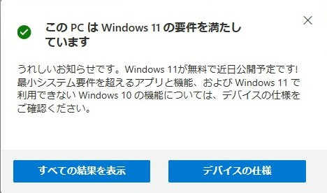 結果は古いPCはWINDOWS11にアップグレードするためのシステム要件を満たしていないと表示されWINDOWS11にアップグレードが出来ません。最近買ったPCはシステム要件を満たしていると表示されましたのでWINDOWS11にアップグレードが出来そうです。