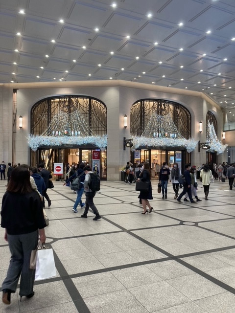 梅田も人が多くなり、百貨店にも多くの買い物客がいました。