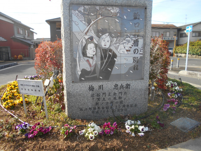 この「新ノ口」は近松三部作「曾根崎心中」「心中天の網島」「冥途の飛脚」の中で「冥途の飛脚・新ノ口雪の別れ」の段で有名な地です。