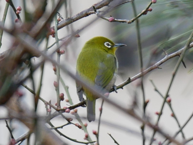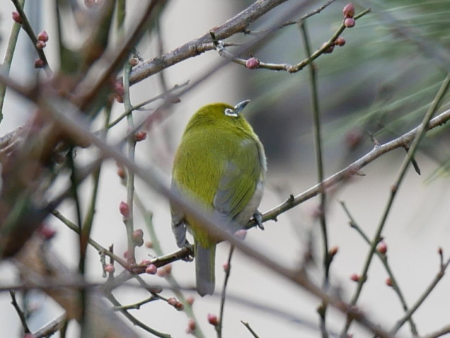 今日の午後、梅の木にメジロが遊びに来ていました。