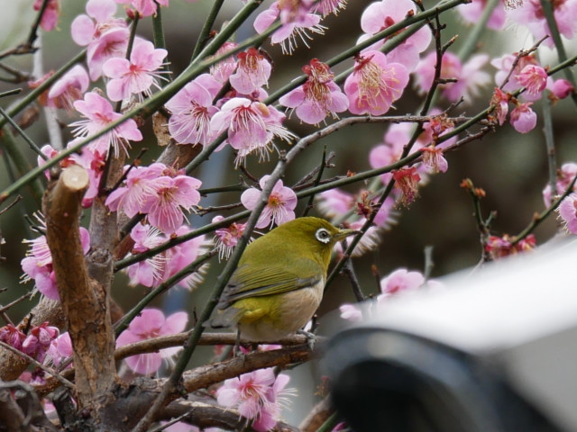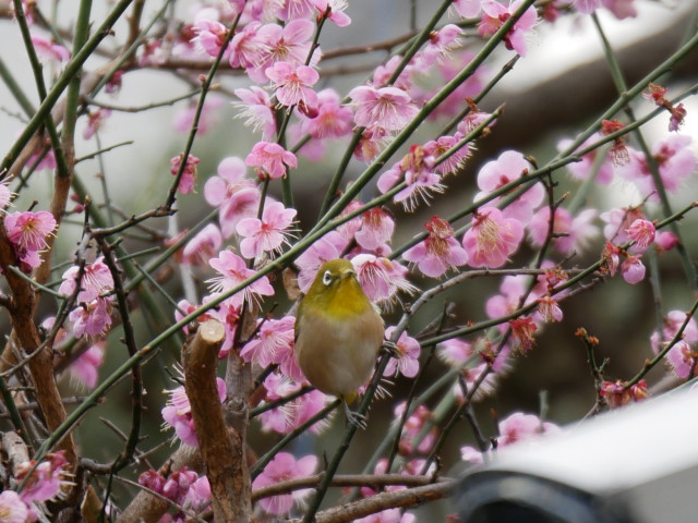 散歩から帰ったら梅の木にメジロが遊びに来ていたので写真を撮りました。
