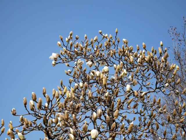 午後から近所をぶらり散歩、白木蓮の様子を見てきました。