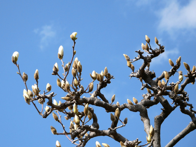 近くの白木蓮の様子を見に行きました。一気に開花しそうな気配です。