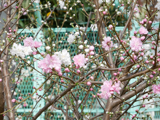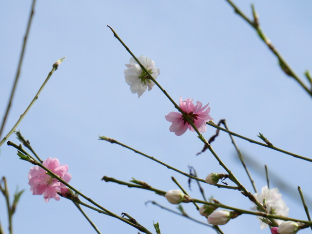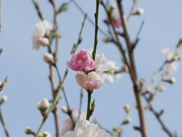 以前も投稿した紅白の花が咲くたぶん桃の木