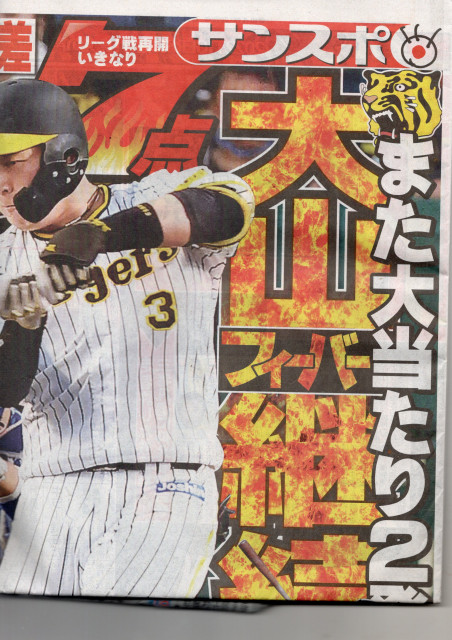 相手投手はノーノーの今永。イヤな予感が走ったが・・・今のタイガースには心配ご無用。その裏、糸原の2点タイムリー、続いて山本の起死回生の2点タイムリーで逆転。