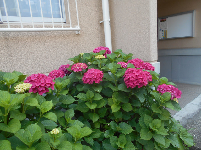 淡いピンク色から、見事な赤色に変わりました。この後、紫色に変わり、アジサイの生涯も終わりに近づきます。
