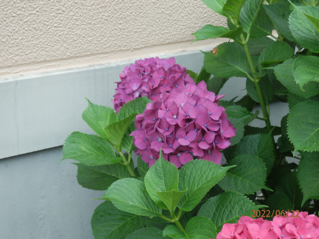 青系のアジサイも赤系のアジサイも、このように紫色に変化すると老化現象の表れです。
