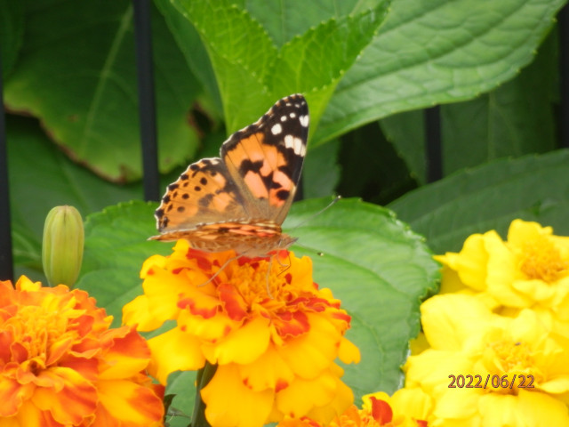 団地の花壇で蝶々(アカタテハ)を見つけました。