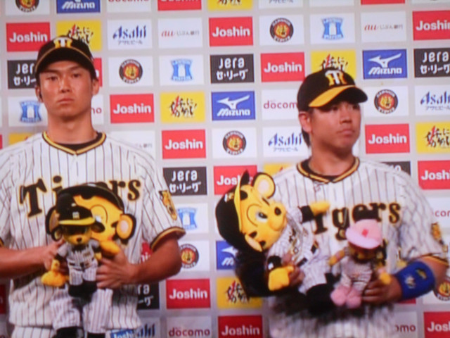 青柳が打たれ同点に・・・湯浅に交替したが、後続をピタリと抑えた。その裏に勝ち越し・・・プロ入り初勝利。ウィニングボールを大事に後ろポケットに入れていました。家宝だね・・・