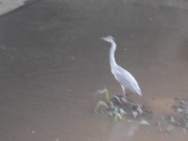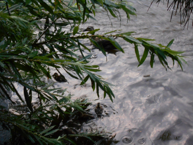 カルガモ一家は(親ガモ+ヒナ5羽)流されないように健気に泳いでいました。