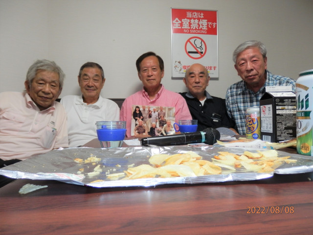 守口の「まねき猫」に5人集まり、追悼カラオケ大会を開催しました。