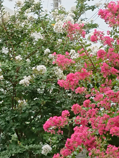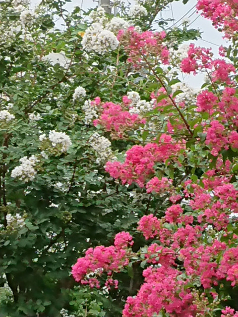 < 散歩道で見つけた白色と紅色の百日紅 >