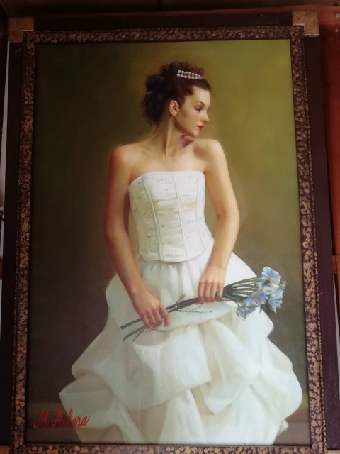 結婚式の新婦をモデルにしたそうですが、顔は外人風に描いたそうです。