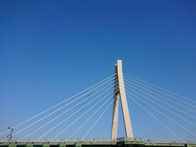 橋の下から空を見ると雲一つない真っ青な空でした。