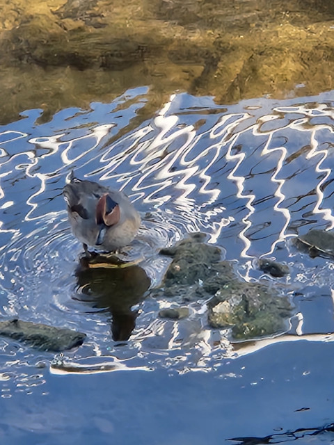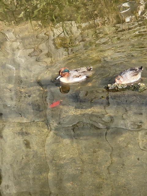 コガモは渡り鳥で、日本に飛来した頃は、雌雄同じ色をしていますが、