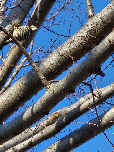 左上、この鳥はコゲラ(キツツキ)です。木に抱き着くように止まります。何年振りかなあ 滅多に遭遇しません・・・ラッキー