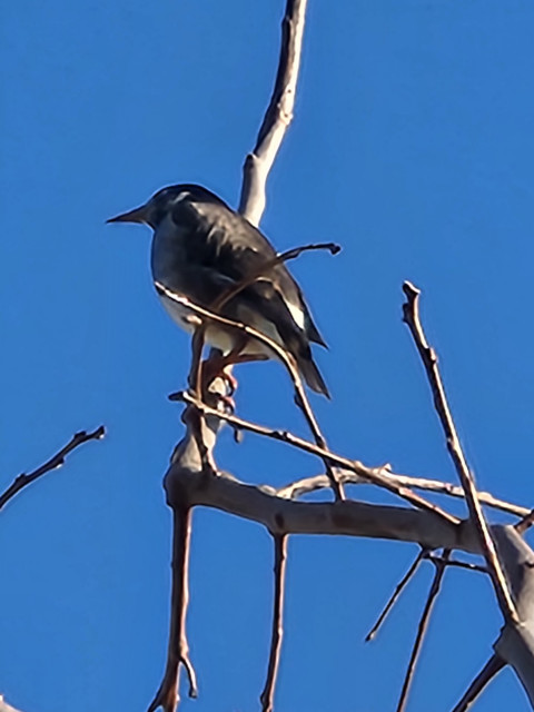 これはムクドリかな・・・雲一つ無い真っ青な空 こんな日を「小春日和」と呼ぶのかな。
